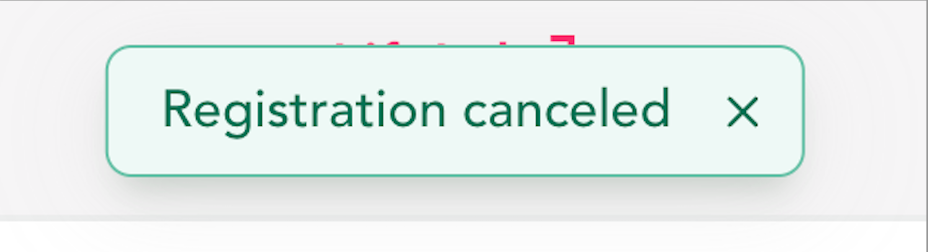 - You'll receive a confirmation banner at the top of the page that you are not registered or have unregistered.